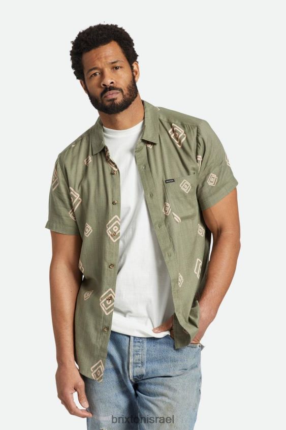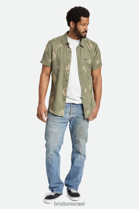 עודפי זית/ורוד אלמוגים לבוש LJ8VJ2 צ'רטר סלאב s/s ארוגים גברים Brixton